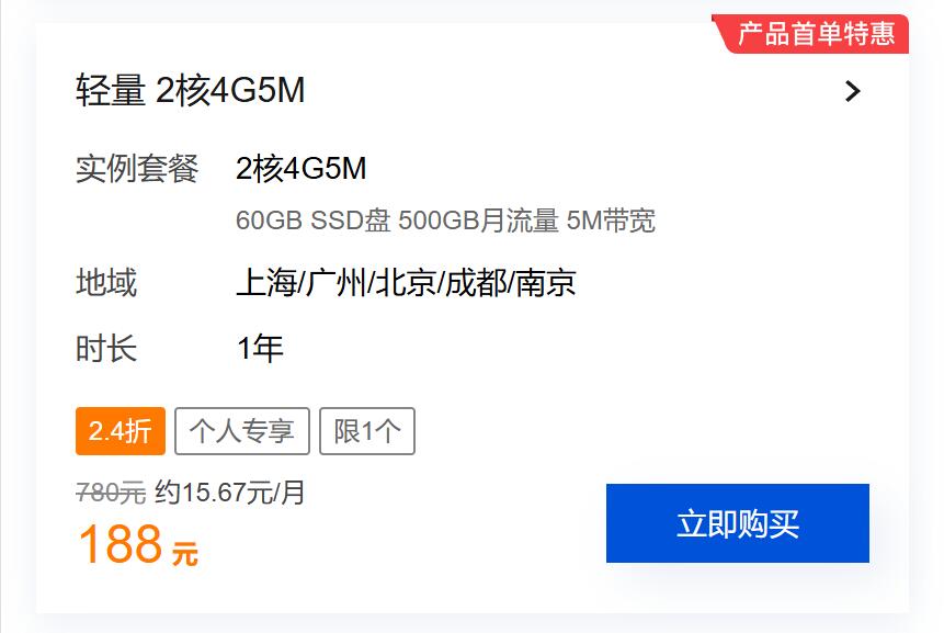 腾讯云11.11云上盛惠-4核4G云服务器38元/年