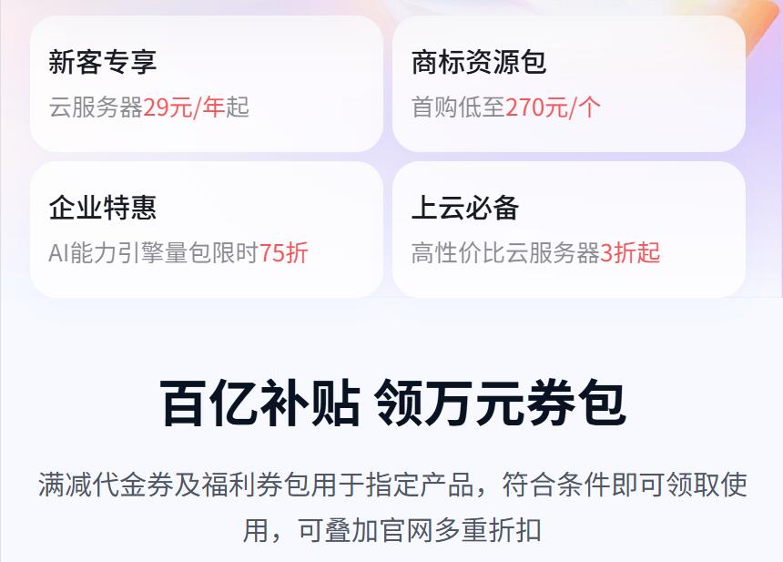 万元礼包免费领:新用户完成实名认证,即可解锁 11110 元上云礼包,内含云服务器、云数据库等全品类满减代金券,新购续费均可叠加使用。
