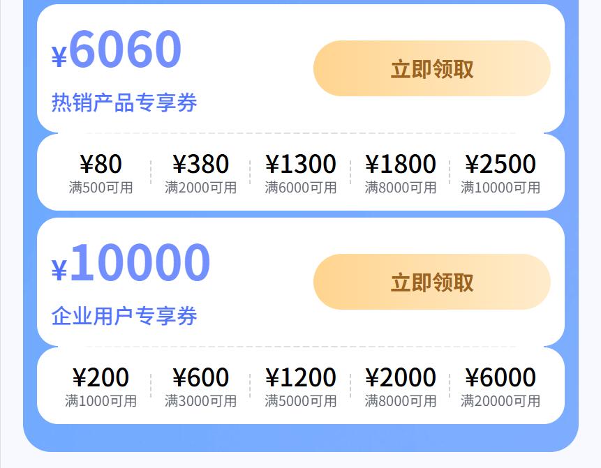 续费折上折:热销云服务器、轻量云服务器续费低至 1.6 折,长期使用更划算;多场景上云一站采购,全品类低至 2.3 折,覆盖云存储、CDN、视频转码等一站式解决方案。