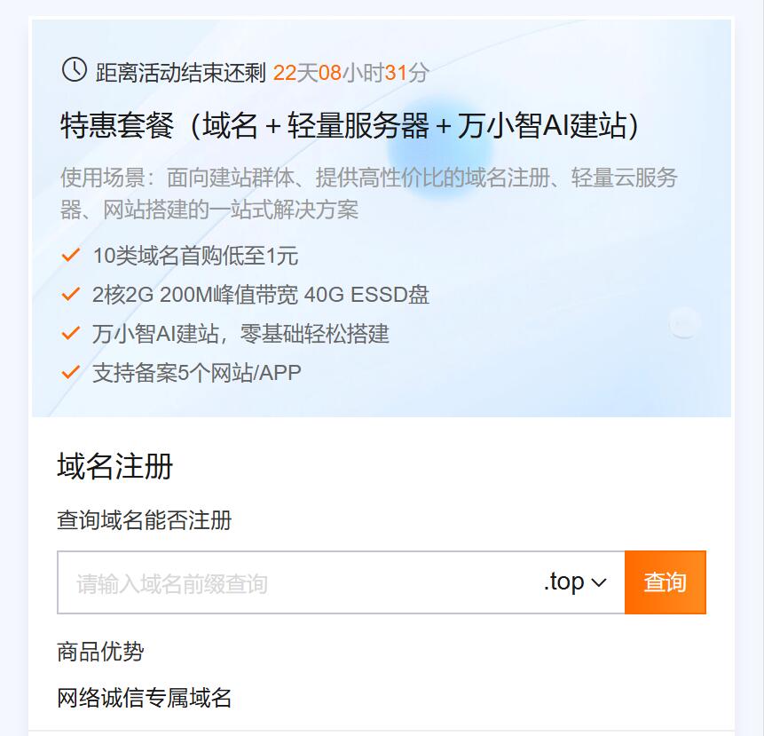 域名 / 短信:指定域名 0 元首年注册,国内通用短信 500 条 10 元 / 3 个月、1000 条 35 元 / 2 年,企业通信成本大减。