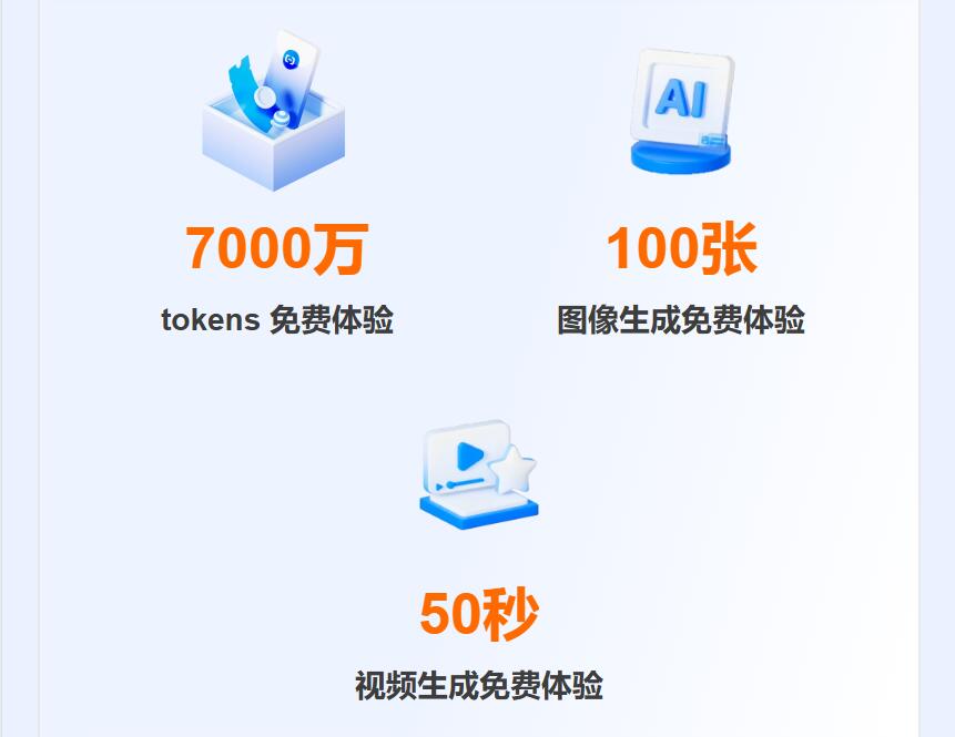 免费体验福利:开通百炼平台即享 7000 万 Tokens 免费额度,叠加 100 张 AI 生图、50 秒视频生成权益,零成本体验通义千问全模态大模型。