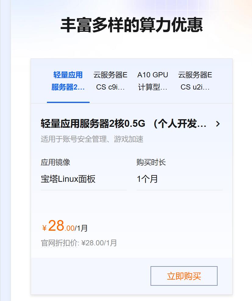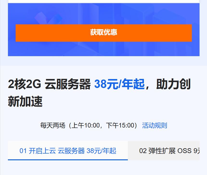 axin 2025-11-08 共155人围观 ,发现0个评论轻量应用服务器:新用户专享 2 核 2G、峰值 200M 带宽、40G ESSD 云盘(不限流量),日常价 68 元 / 年,秒杀价仅 38 元 / 年,适配个人博客、小型电商、测试环境等场景。